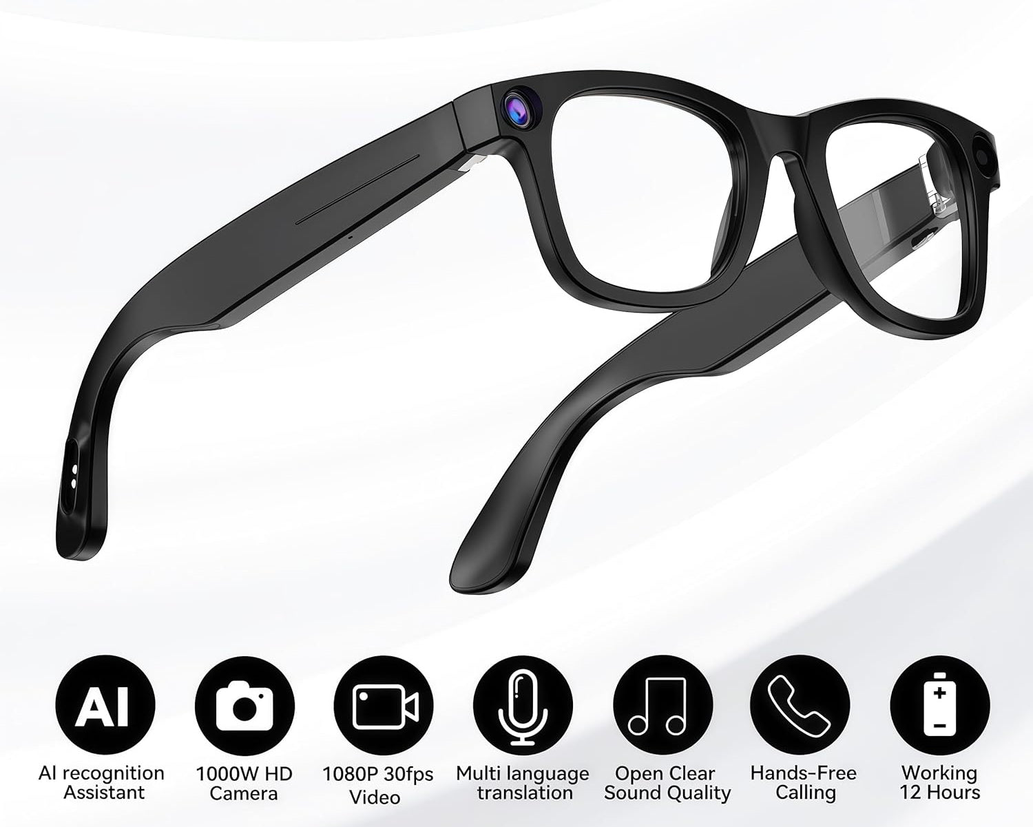 Answer 1: The VizioLens smart glasses feature a built-in 1080P HD camera, allowing you to record high-quality video content from your unique perspective, perfect for vlogging or capturing special moments.